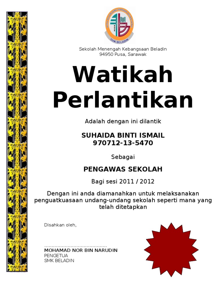 Sijil Watikah Pelantikan Pengawas Pdf