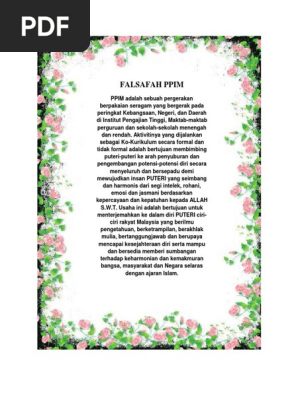 Lagu pergerakan puteri islam malaysia dan lirik. FALSAFAH PPIM Pergerakan Puteri Islam Malaysia adalah sebuah pergerakan berpakaian seragam yang bergerak pada peringkat kebangsaan negeri dan daerah di institut. Buku log biodata profile diri falsafah ppim matlamat objektif.