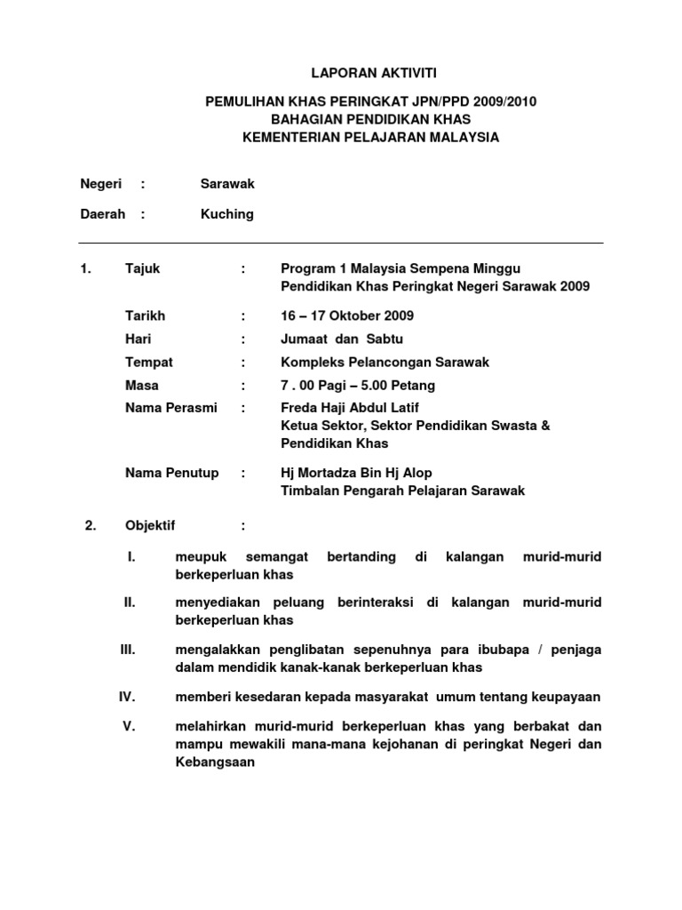 Contoh Laporan Aktiviti Pemulihan Khas Jpn Pdf