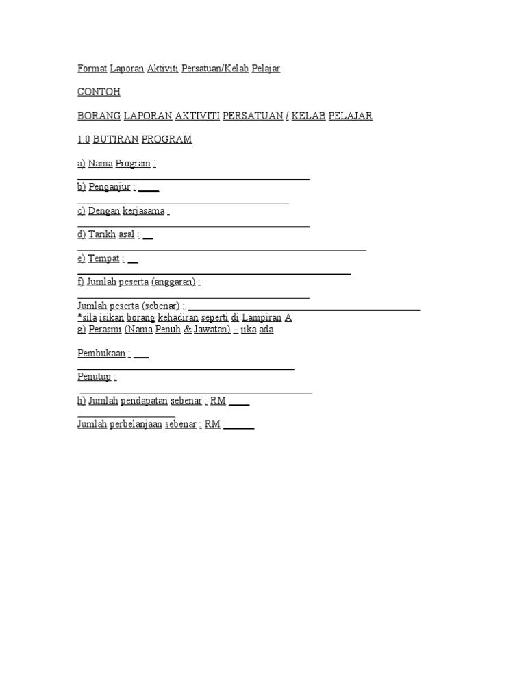 Format Laporan Aktiviti Persatuan Pdf